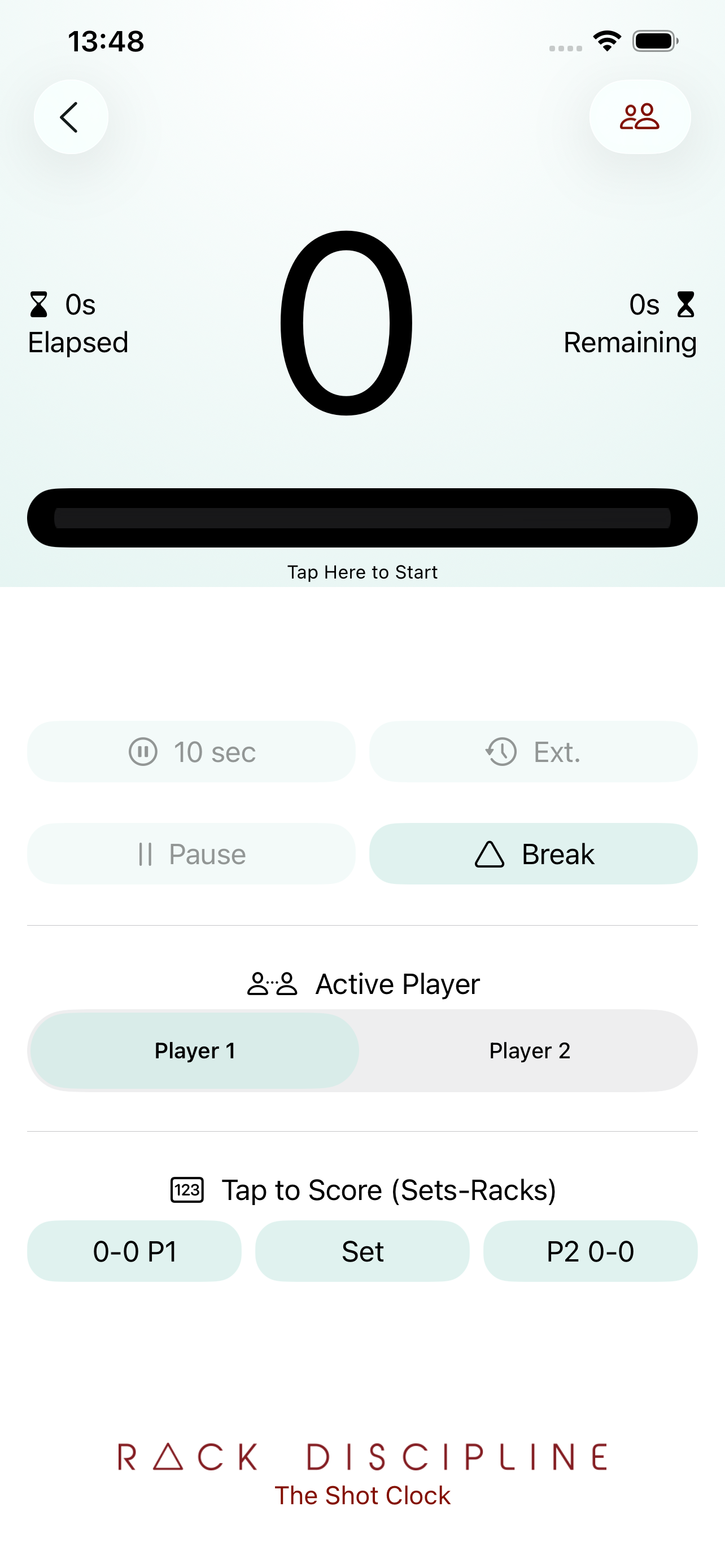 'Start the Clock' does just that - and takes you to the next Screen (Below)